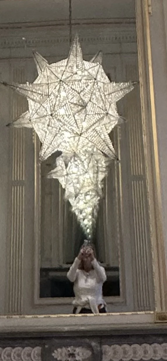 — The Escher Museum, picture of a chandelier and its reflection
